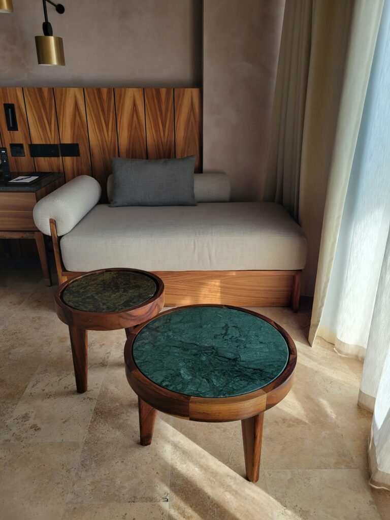 I personally love a wooden bedside table paired with soft linen bedding. It’s timeless, durable, and cozy. Guests subconsciously appreciate tactile warmth.