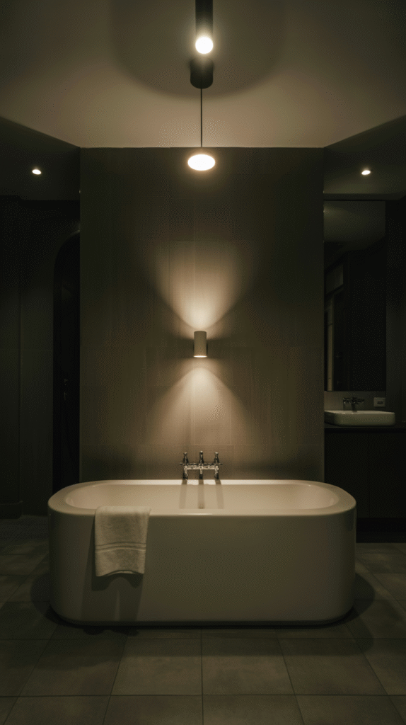 IMO, warm lighting beats cold lighting in a black bathroom. Cold light can make everything feel a bit… hospital-y. Not the vibe.