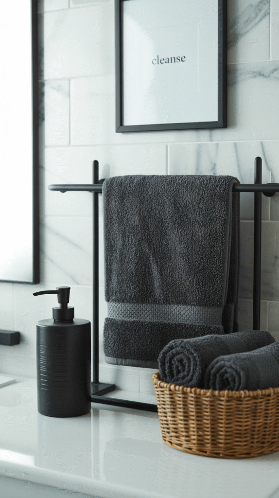 Trust me, swapping out those silver towel hooks for black ones makes a huge difference. It’s like your bathroom suddenly got its life together.