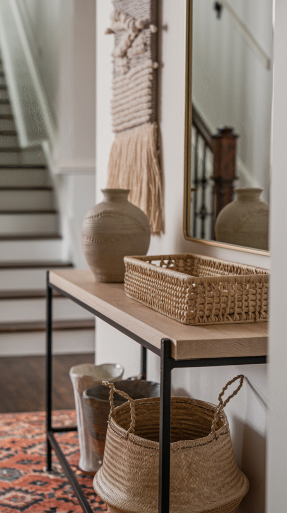 This one’s a classic. Console table + mirror = instant polish. Just make sure the mirror is proportionate to the table. If you go too small, it’ll look awkward—like you tried, but not really.