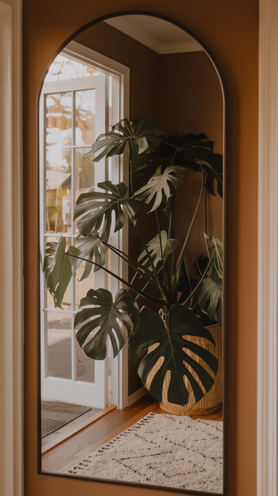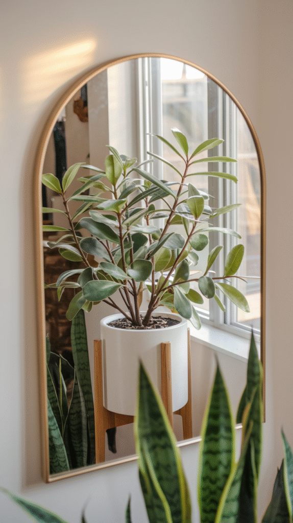 A leafy plant or small vase of fresh stems can bring your mirror setup to life. Mirrors reflect greenery beautifully, making your space feel more lush and lively.