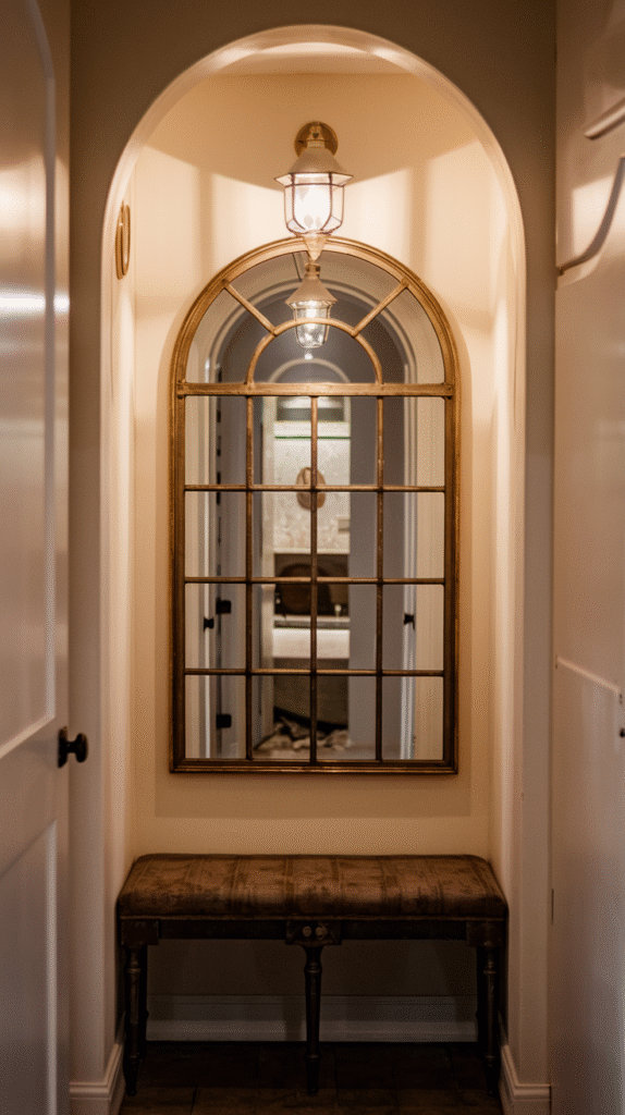Got an awkward little corner or niche? Stick a mirror there and make it work for you. It can help open up tight spots and make them feel intentional instead of “Oops, forgot this area existed.”