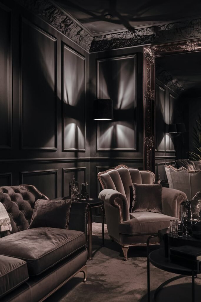 Why it works: These shades create depth and drama without overwhelming your space.