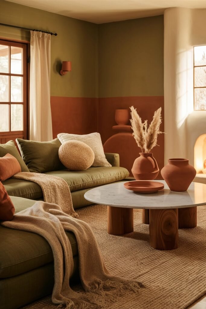 - Paint an accent wall in clay or muted olive.