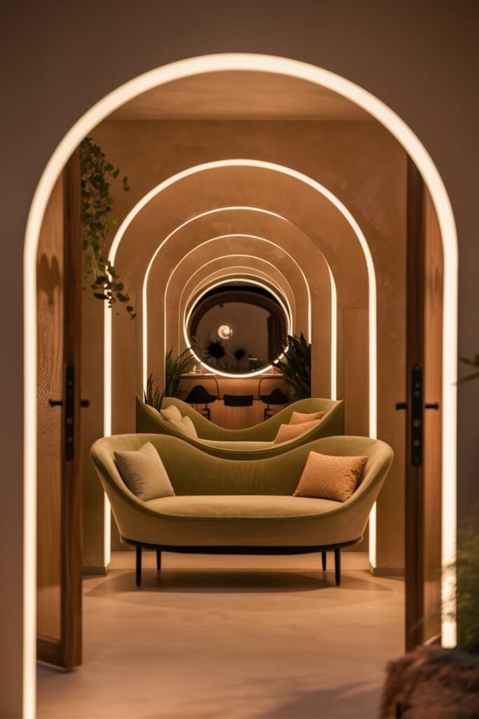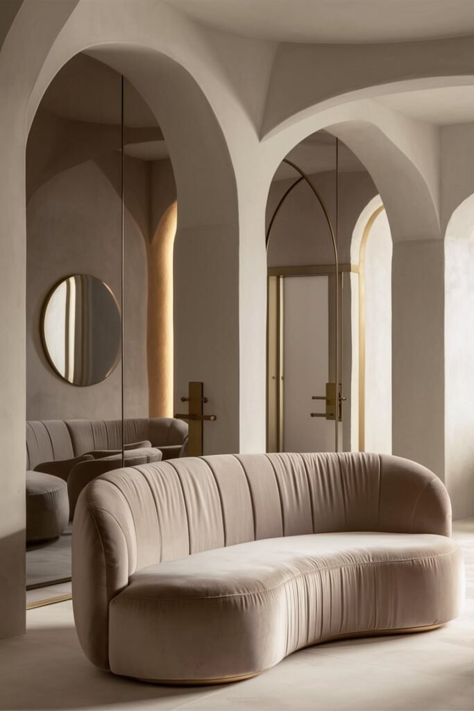 - Architectural elements: Arched doorways or rounded wall niches add instant “designer” energy.